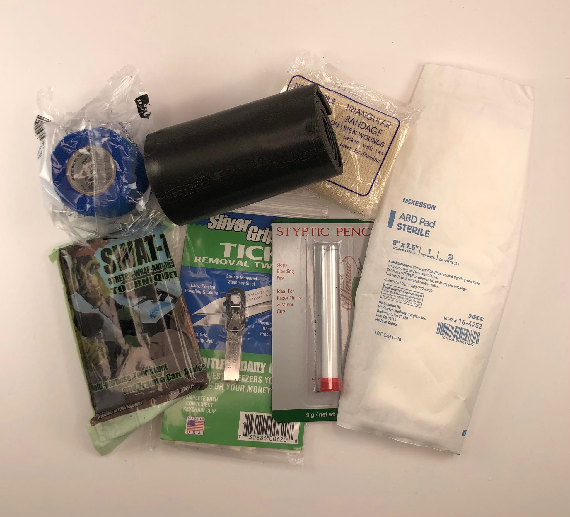 We all know that dogs are people too ! So you should have a first-aid kit designed just for them if the need arises. This 365CARRY sling/waist pack has all the essentials and lots of room for additional items. There's Cohesive Bandage, a must have item. An 8"x7.5" Gauze pad. Styptic Pencil to control bleeding. Tick Removal Tweezers with Magnifying Lens and Alcohol Wipes, also handy for thorns and splinter removal. A Universal Splint. A Swat-T all purpose Tourniquet, the preferred type for animal hemorrhage control. Emergency Blanket. And Triangular Bandage to secure a wound dressing or use as a soft muzzle. Hiking, Hunting, or at home, this complete kit should be an addition to every dog owner's everyday carry !